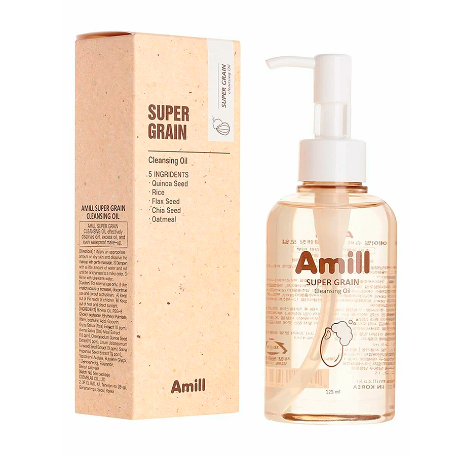 Amill Super Grain Cleansing Oil este un ulei hidrofil (solubil în apă) cu extracte de cereale, conceput pentru a curăța profund pielea de machiaj, exces de sebum și alte impurități. Previne eficient punctele negre și comedonele, dizolvă dopurile de sebum și lasă pielea proaspătă, moale și bine îngrijită.